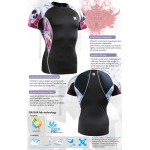 Technical Compression Shirt with double graphic on sleeves and sides - original design skull, bones and veins - pink.