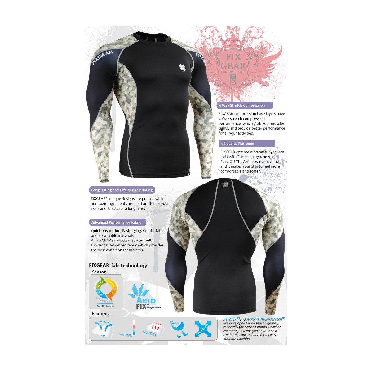 SIZING CHART for FIXGEAR technical compression shirts.