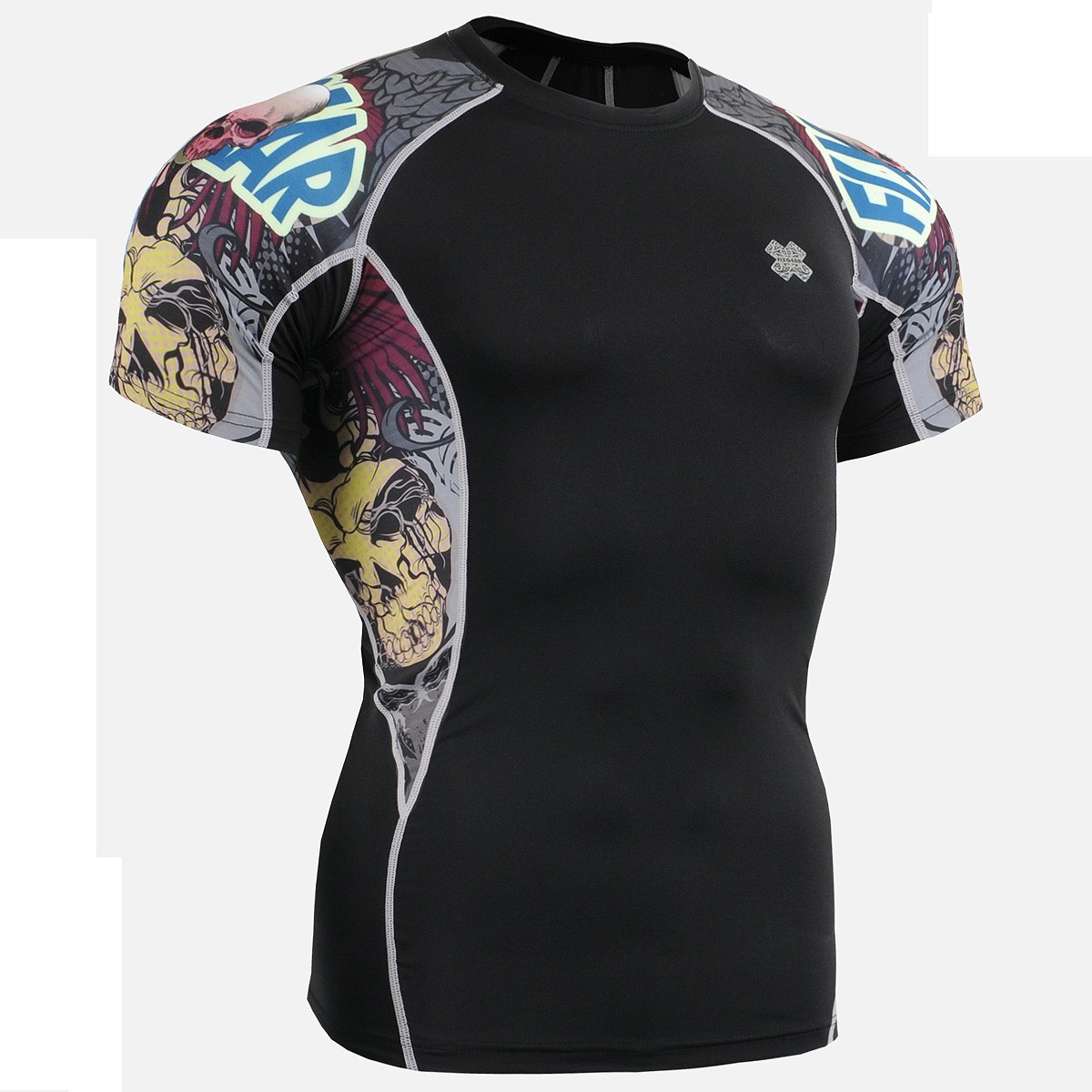 Technical Compression Shirt with double graphic on sleeves and sides - original design comic skulls.