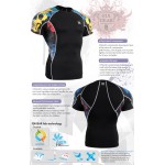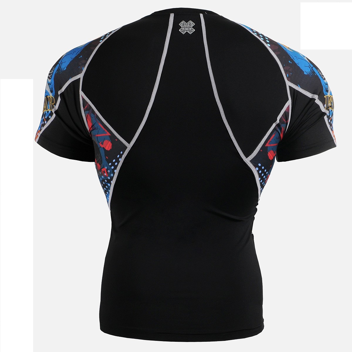 Technical Compression Shirt with double graphic on sleeves and sides - original design skulls in primary colors.