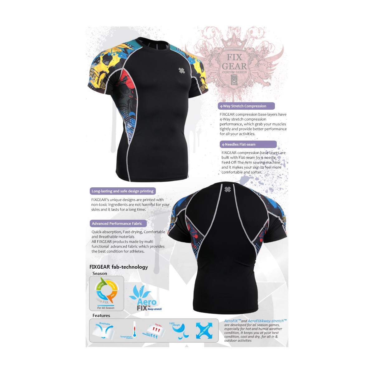 "Primary Skulls" - FIXGEAR Short Sleeve Second Skin Technical Compression Shirt .