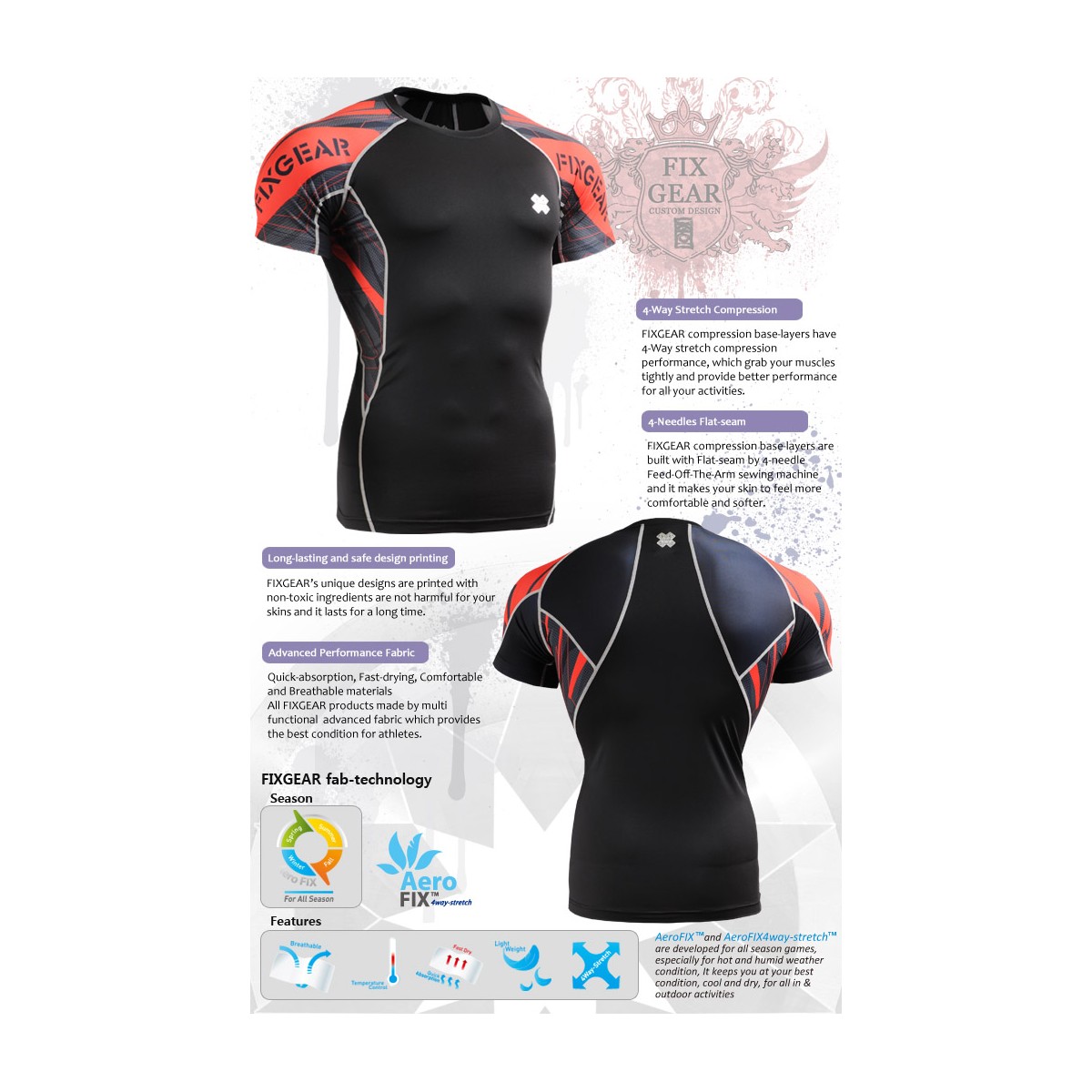 SIZING CHART for FIXGEAR technical compression shirts.