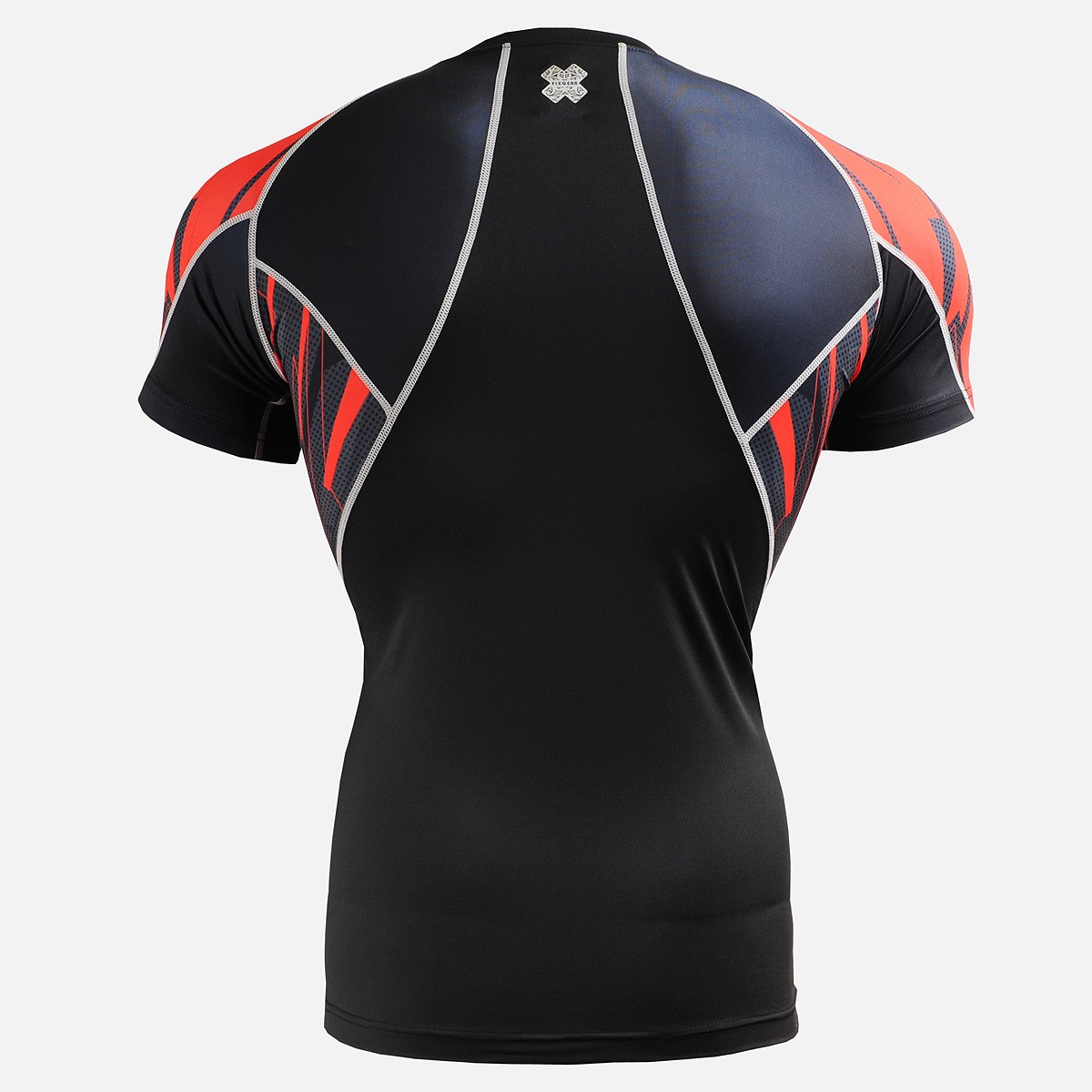 Technical Compression Shirt with double graphic on half sleeves and sides - original design red & grey splinters.