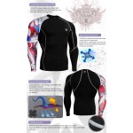 Technical Compression Shirt with double graphics on one full sleeve - original design muscles, bones and veins - red.