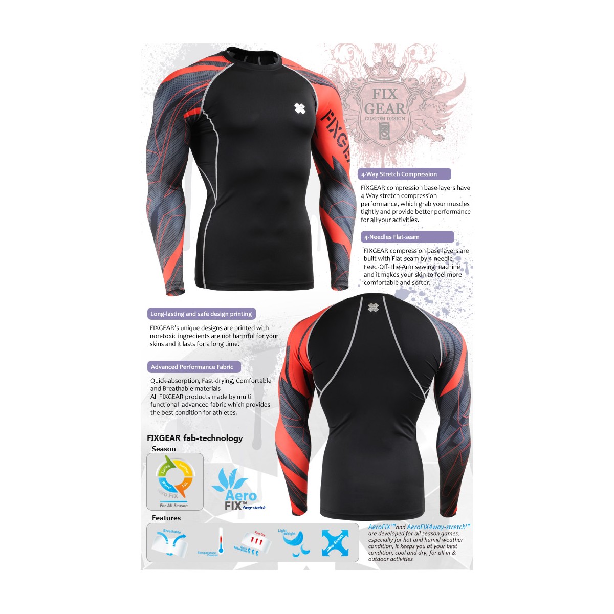 SIZING CHART for FIXGEAR technical compression shirts.