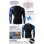 Technical Compression Shirt with graphic on both full sleeves - original design geometric shapes tatoo - blue.