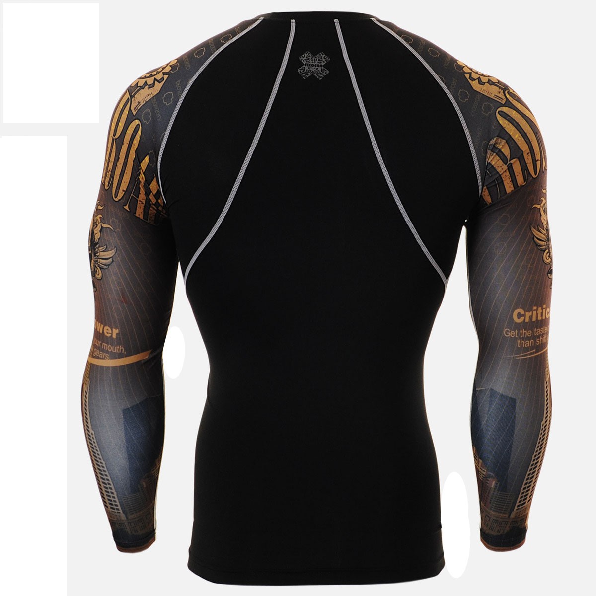 Technical Compression Shirt with graphics on both sleeves - original design skull with city scene.