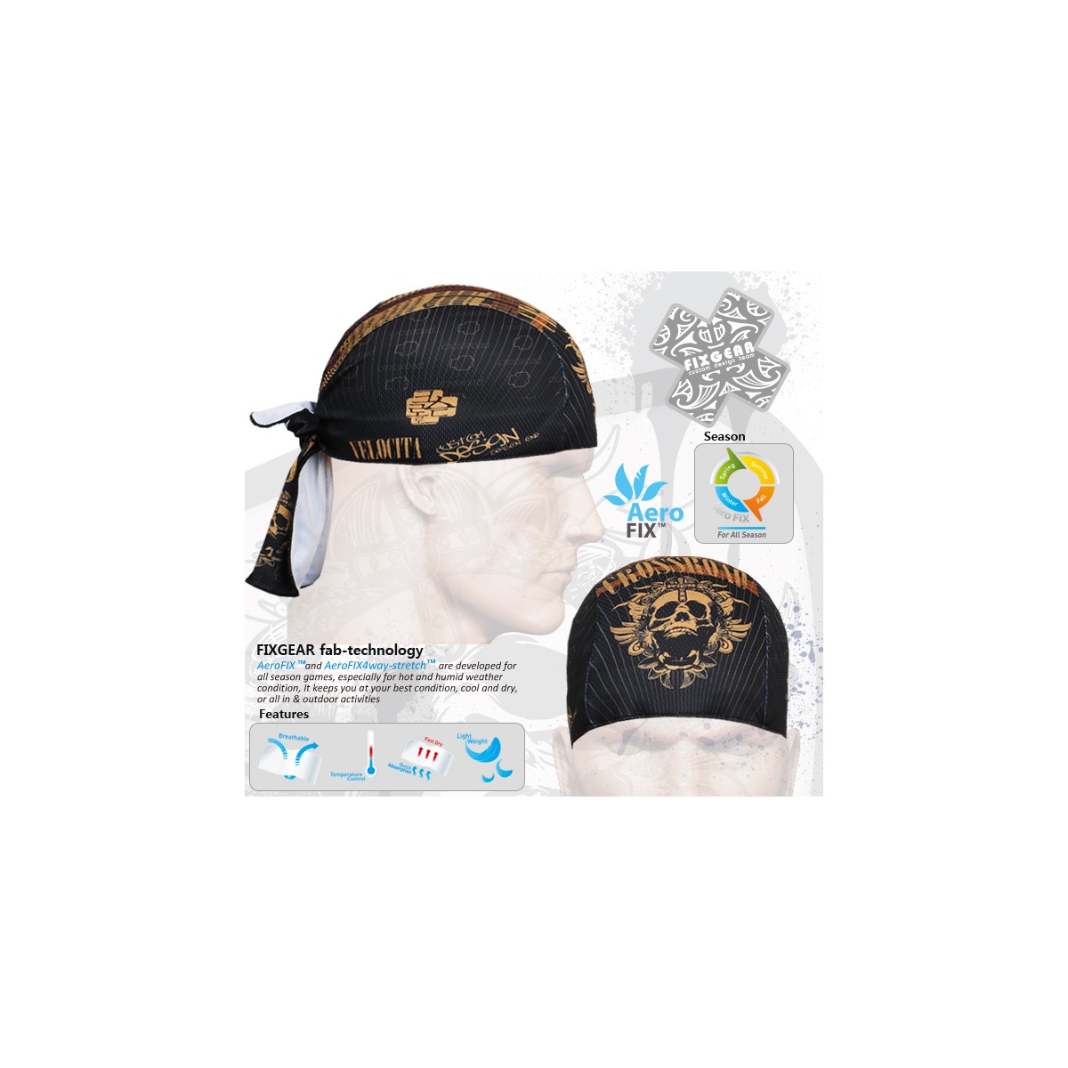 "Crossroad Skull" - FIXGEAR Cycling/Running/Training Bandana.