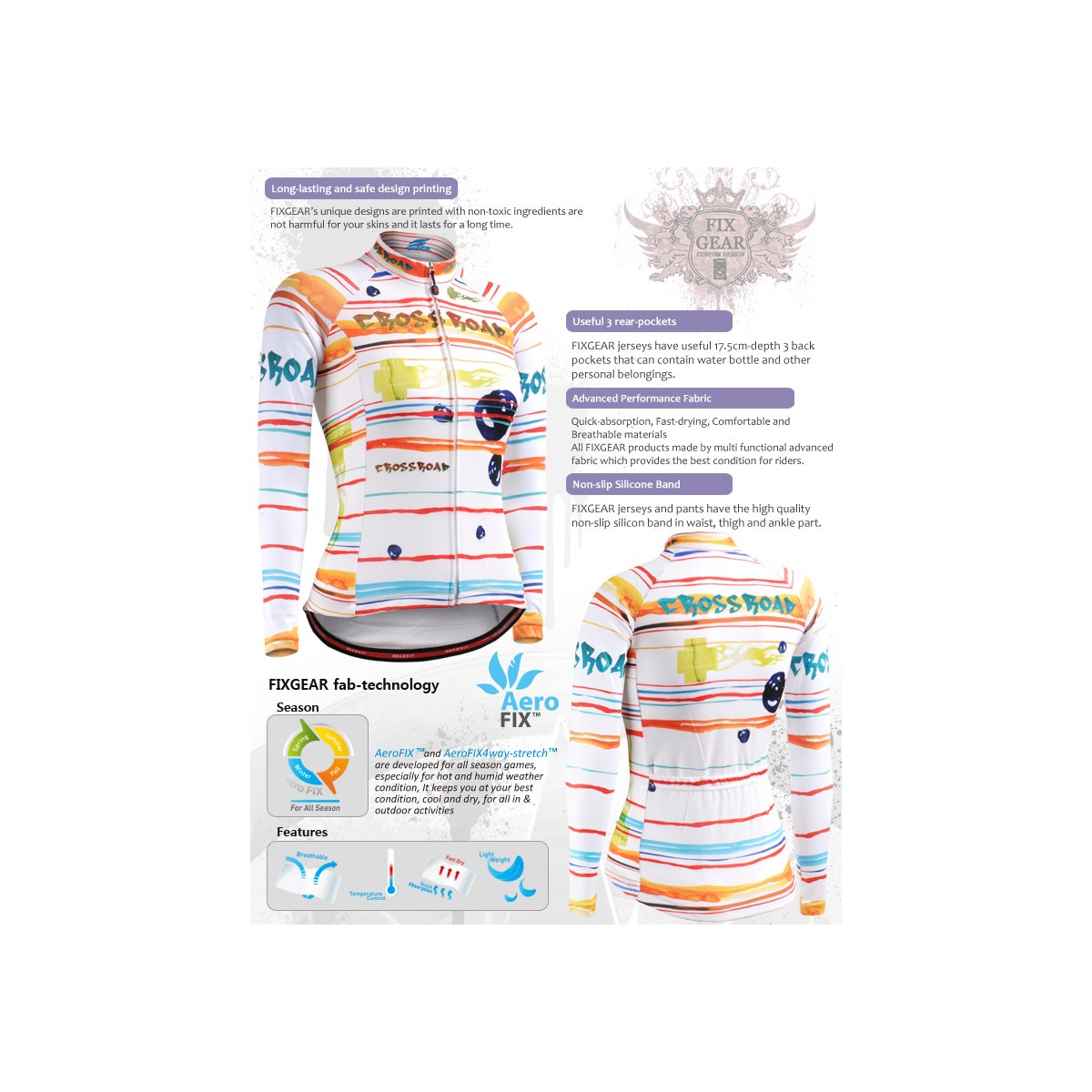 "Ribbons & Flames" WOMAN - FIXGEAR Long Sleeve Cycling Jersey.