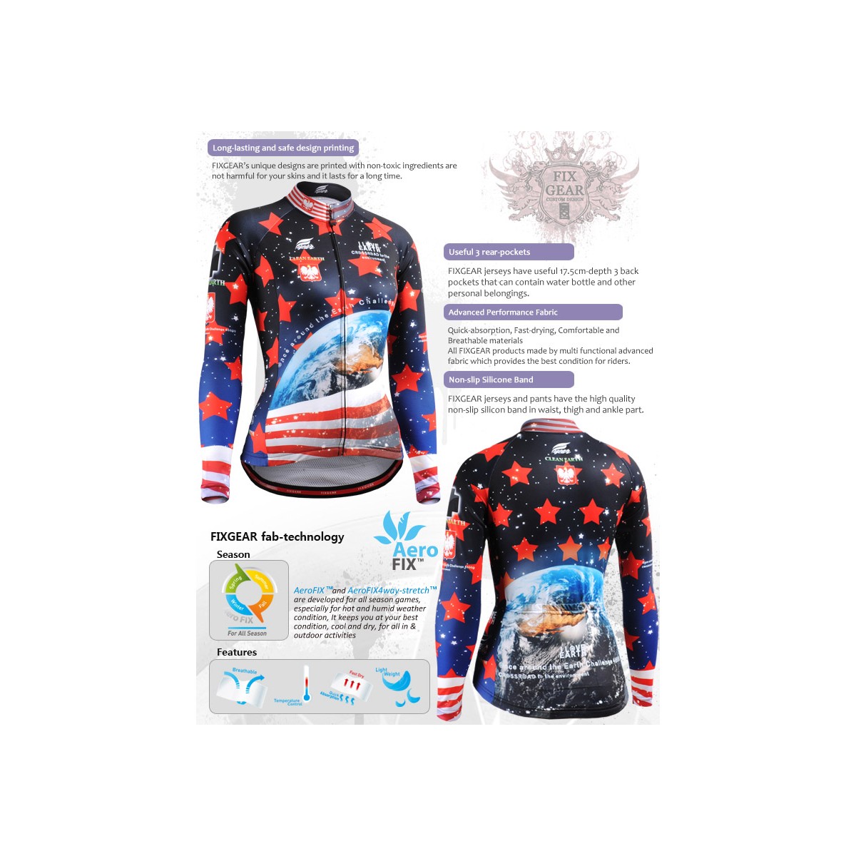 "CSW1001" WOMAN - FIXGEAR Long Sleeve Cycling Jersey.