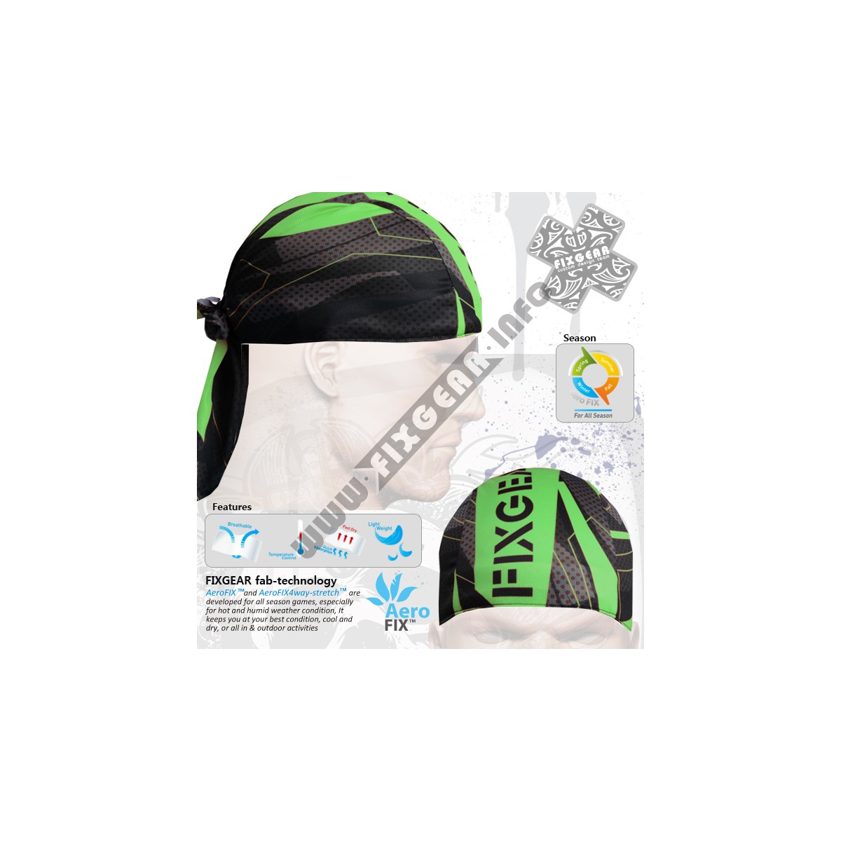"Astillas" Verde - Bandana Ciclismo/Correr/Entrenar FIXGEAR.