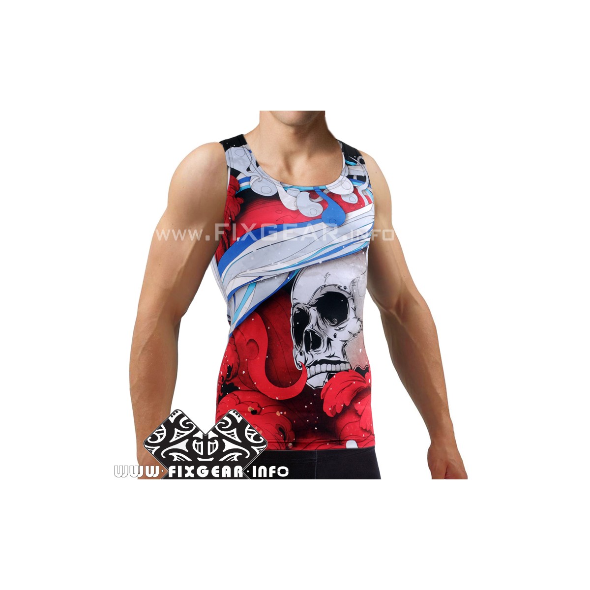 "The Skeleton" Rojo Tirantes - Camiseta Técnica de Compresión Segunda Piel FIXGEAR.