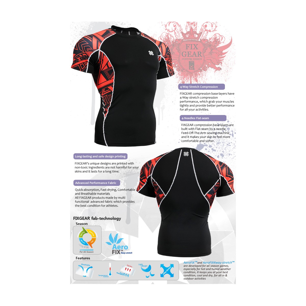"Geometría Roja" - Camiseta Técnica de Compresión Segunda Piel Manga Corta FIXGEAR.