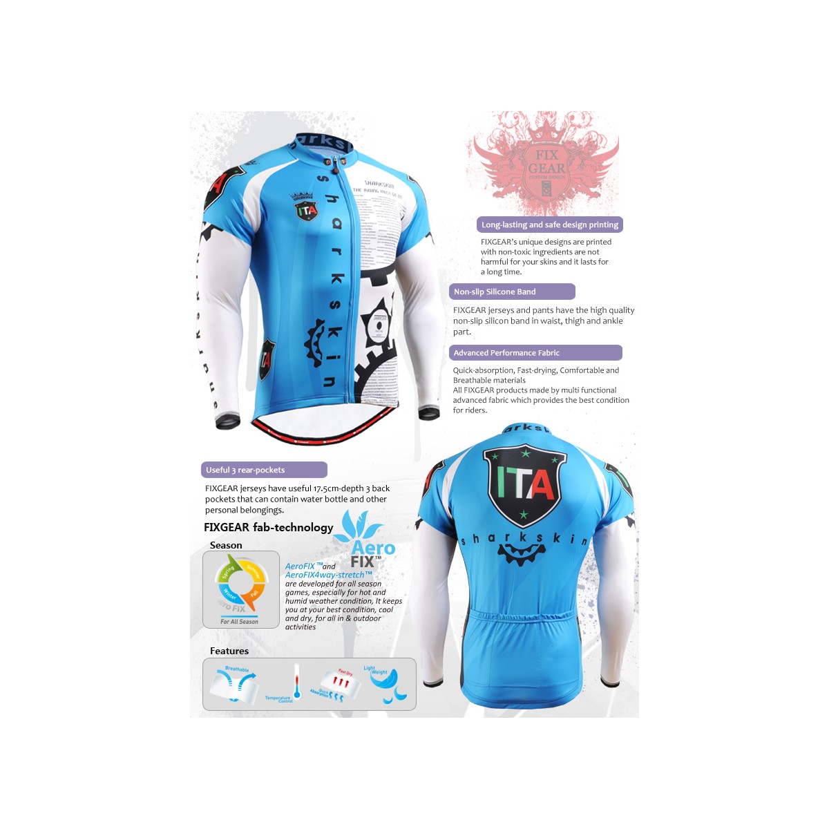 El maillot perfecto para montar en todas las estaciones y climas. le refresca en verano y le mantiene caliente en invierno mientras le protege de los gérmenes y evita los malos olores. Ideada y diseñada tanto para el ciclismo de carretera como la MTB con una tecnología que se ha creado para ofrecerle una perfecta adaptabilidad a su físico y a la vez mantener su cuerpo a una constante y cómoda temperatura, alejando el sudor de su piel y evaporándolo. Pesa sólo 200 gramos, un peso pesado nunca ha sido tan ligero.