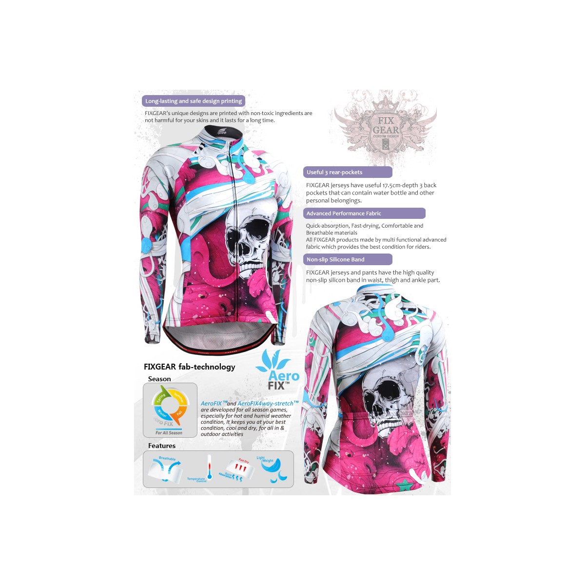 "El Esqueleto" Rosa - MUJER - Maillot Ciclismo Manga Larga FIXGEAR.