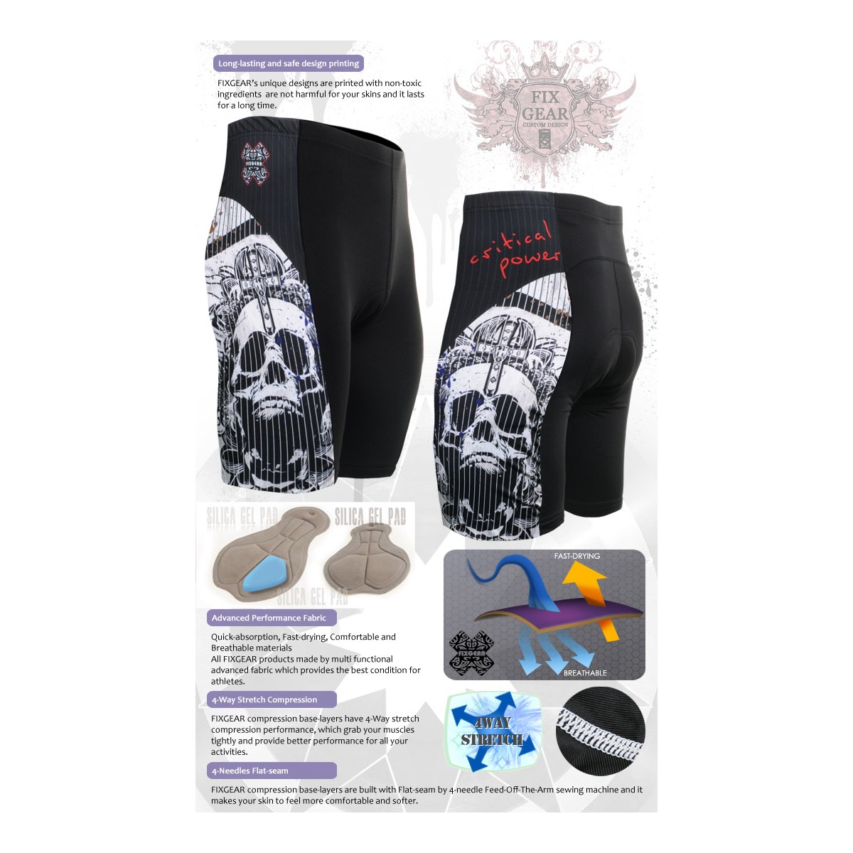 "Calavera Rayada" - Pantalón Corto de Ciclismo FIXGEAR.