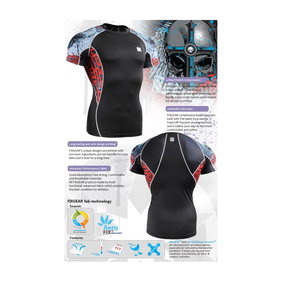 La camiseta técnica perfecta para todas las estaciones, climas y deportes. le refresca en verano y le mantiene caliente en invierno mientras le protege de los gérmenes y evita los malos olores. Ideada y diseñada para ser su segunda piel con una tecnología que se ha creado para ofrecerle una firme compresión y una perfecta adaptabilidad a su físico y a la vez mantener su cuerpo a una constante y cómoda temperatura, alejando el sudor de su piel y evaporándolo. Pesa sólo 165 gramos, un peso pesado nunca ha sido tan ligero.