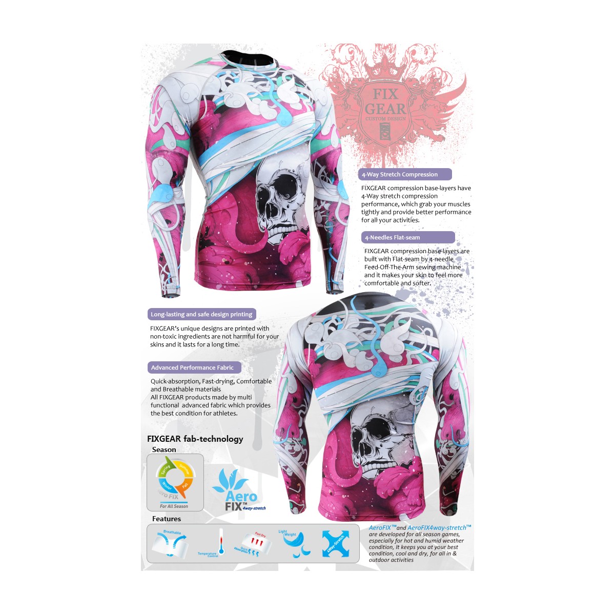 "El Esqueleto" Full Rosa - Camiseta Técnica de Compresión Segunda Piel FIXGEAR.