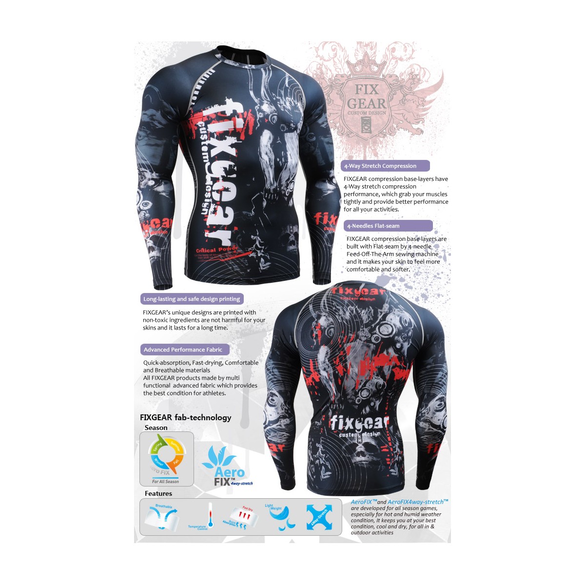 "Calavera en el Tiempo" FULL - Camiseta Correr/Entrenar/MMA Segunda Piel FIXGEAR.