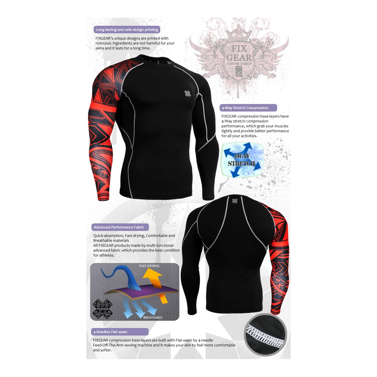 "Uni Geometría Roja" - Camiseta Técnica de Compresión Segunda Piel FIXGEAR.