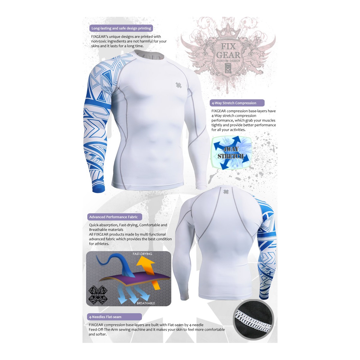 "Tribal Azul" - Camiseta Técnica de Compresión Segunda Piel FIXGEAR.
