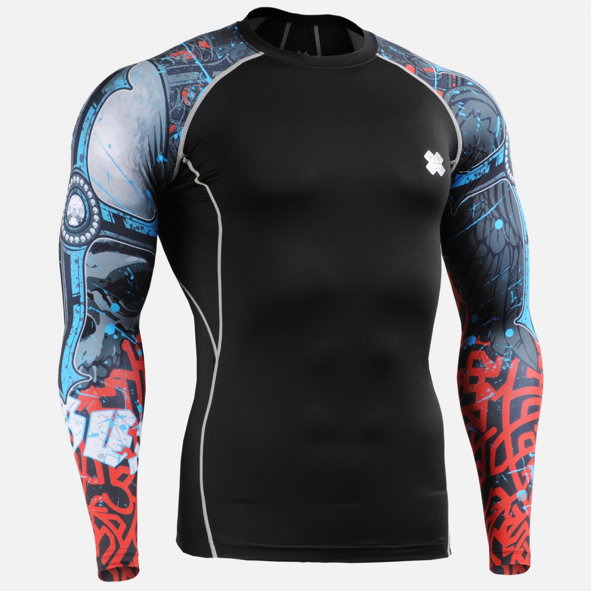 con gráfico en ambas mangas - diseño original calavera con cruz.
