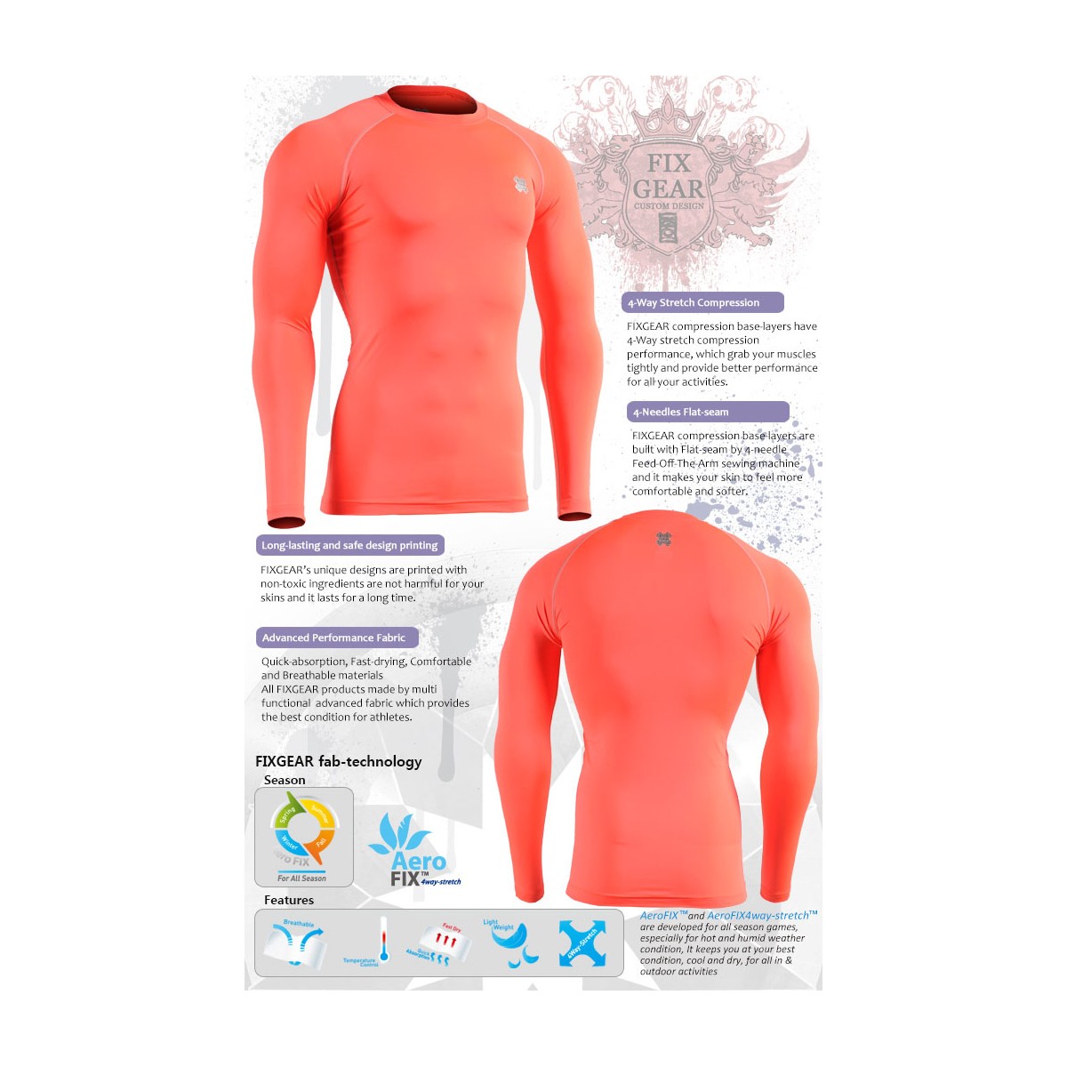 "ORANGE FIX FLUOR" Manga Larga - Camiseta Técnica de Compresión Segunda Piel FIXGEAR