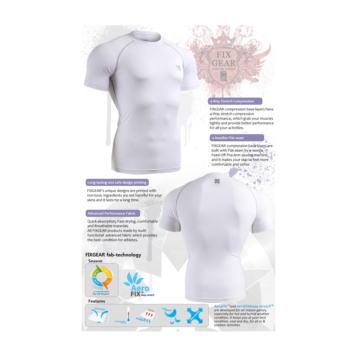 "WHITE FIX" Manga Corta - Camiseta Técnica de Compresión Segunda Piel FIXGEAR.