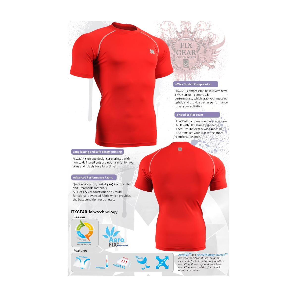 "RED FIX" Manga Corta - Camiseta Técnica de Compresión Segunda Piel FIXGEAR
